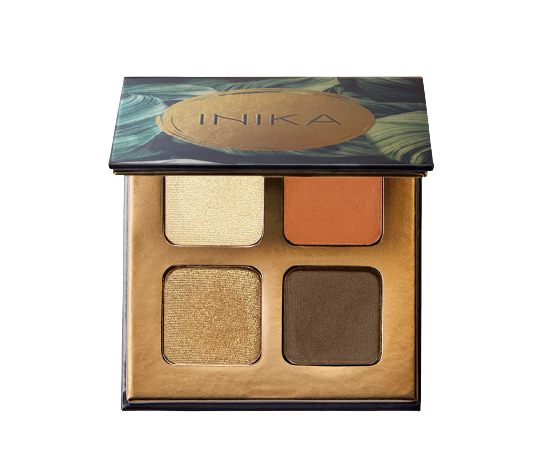 Eyeshadow Quad in Sunset lets you create a variety of subtle and bold eyeshadow blends with a super blendable mix: a dark matte shade, two satin transition colors and a shimmering highlight. Glowing amber with warm undertones.