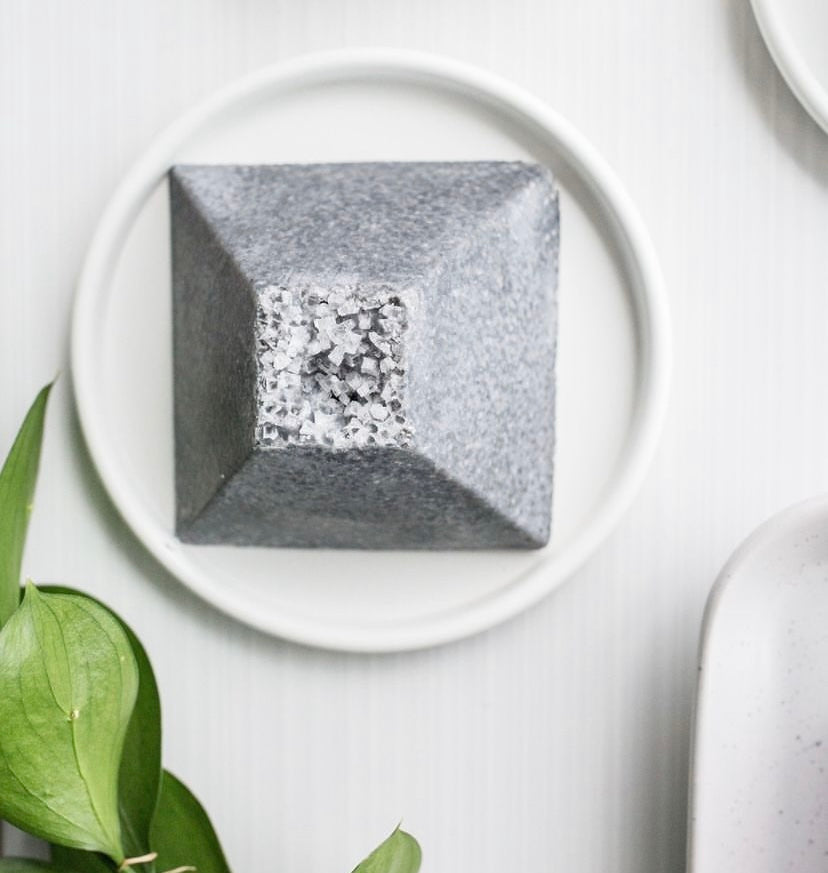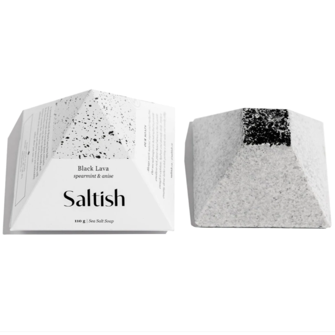What is a "spa stone"? SALTISH Spa Stones are luxury, handcrafted natural vegan soaps made with sea salt that create a luxurious, creamy lather (excellent for shaving) that leaves skin feeling silky and smooth. The salt and signature pyramid shape prevent them from getting slimy in the shower and help them maintain their shape. Gorgeous presentation in a perfectly giftable pyramid box.