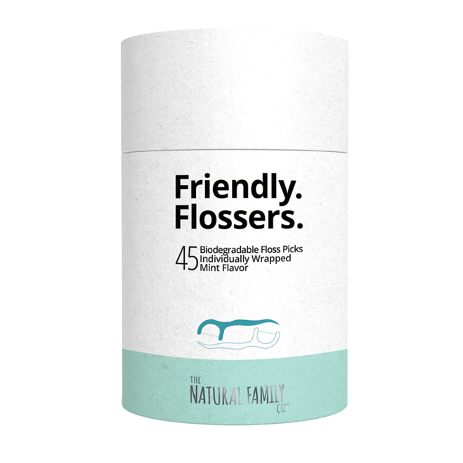 Complete your oral care routine with these NEW Friendly Flossers from The Natural Family Co with Plastic Free Cornstarch handles and a natural mint flavor.